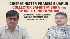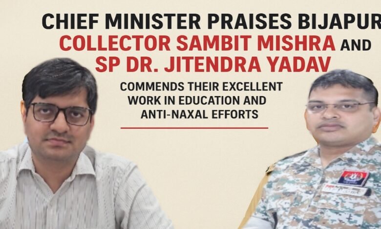 Raipur/Bijapur: During a recent review meeting, the Chief Minister of Chhattisgarh praised Bijapur Collector Sambit Mishra and Superintendent of Police Dr. Jitendra Yadav for their outstanding work in their respective fields. The Chief Minister said both officers are doing exemplary work in a Naxal-affected district like Bijapur and have become inspirations for others.